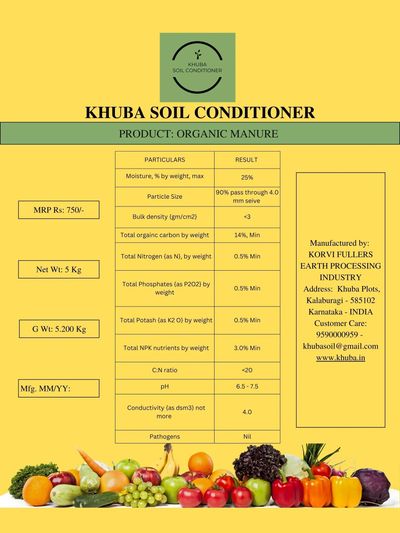 Khuba Soil Booster is a natural and organic soil amendment product that is designed to promote plant growth, improve soil health, and provide natural pest and disease control. It contains a unique blend of Neem - Azadirachta indica - Indian lilac seed and organic carbon, bio agents like Trichoderma, Humic acid, Amino acid, and seaweed extracts that work together to increase microbial activity, improve nutrient uptake, and enhance plant tolerance to environmental hardships.